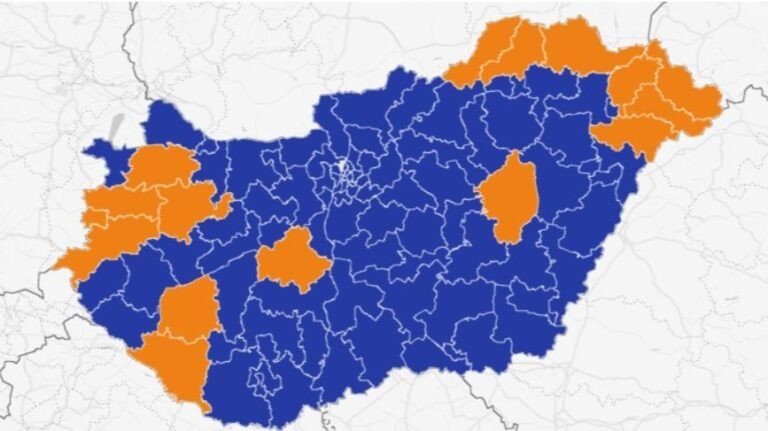 Preliminarna izborna karta Mađarske, objavljena na osnovu prvih obrađenih rezultata Nacionalna izborna komisija Mađarske, jasno pokazuje razmjere političkog preokreta u